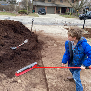 We had 20 yards of mulch delivered to our driveway today. Yep, you read that right, 20 yards. There was no physical contact. I hesitated doing it, but my mom said it would give us a reason to get outside and do something. Well that was for sure. Today the kids and I moved about 8-9 yards of mulch. We cleaned up and spread mulch in our front yard and started the backyard. They ALL 4 were huge helps, but I will admit I was impressed by the youngest 2. They were troopers. Emerson loaded wheel barrows for 3 1/2 hours. Ella helped load and spread that whole time as well. Micah and Brayden both helped between school work and lunch. There were workhorses moving wheel barrows. I will admit I am SUPER sore and worn out. I am going to need a break from manual labor tomorrow to rest my muscles. I closed all my rings (apple watch people) by 2pm. Does that tell you how my day went?