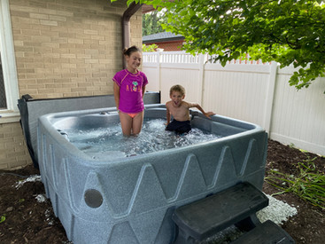 Saturday was a BIG day for me. My HOT TUB was FINALLY being delivered. I ordered it over 3 months ago. I have been anxiously awaiting it. Josh and I worked on getting the pad for it all set up. Then, Josh, Micah, Ella, Emerson, and I carried it to the backyard. That was NOT an easy feat, but we got it done. We started filling it up and were able to get into it that night. It was a little chilly, but still worth it.